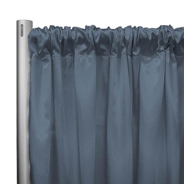 Add some texture and flair to your corporate events, tradeshows, weddings, and more with this inherently fire retardant, extra wide Elite Taffeta draping fabric by Eastern Mills. Backdrops, ceiling panels, or partitions, the choice is yours! With a whole assortment of vibrant colors from which to choose, they are suitable for all manner of themes and events. The medium grey hue also lends it an especially classic look, helping to mask those otherwise drab surfaces and liven up those wide, empty spaces. Super premium quality and natural edges guaranteed.