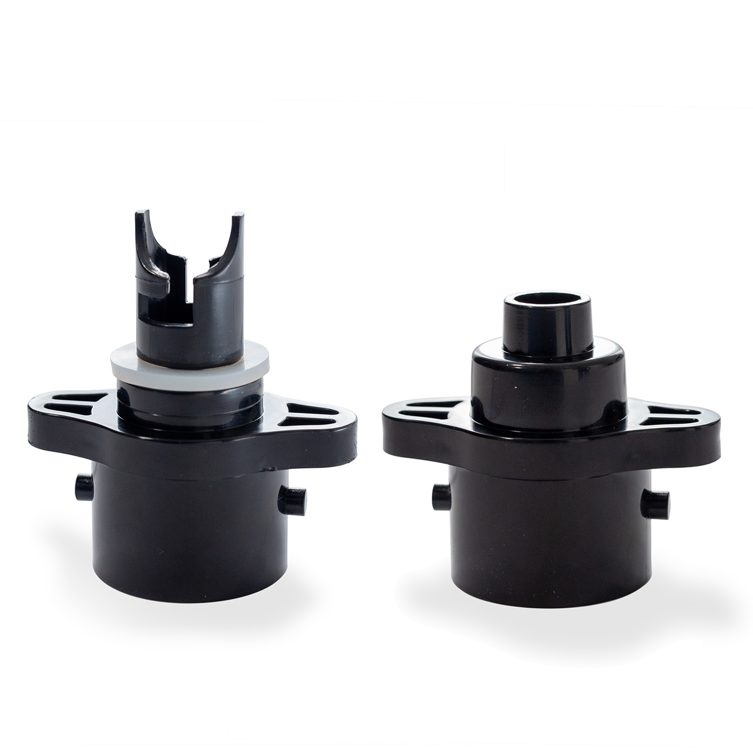 This pump connects easily by inserting the end of the pump and twisting to lock in place. Quick easy and efficient pumping.