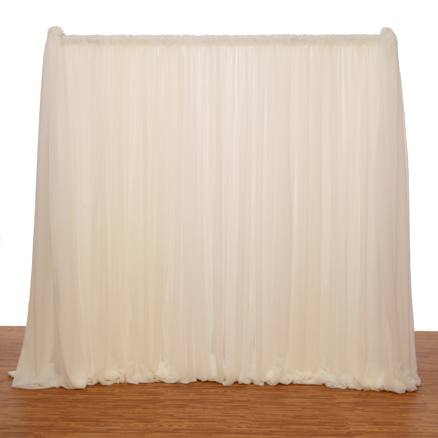 Included drape panels made from high quality crushed sheer fabric, in your choice of white or ivory, let you create a variety of backdrops for any occasions.
