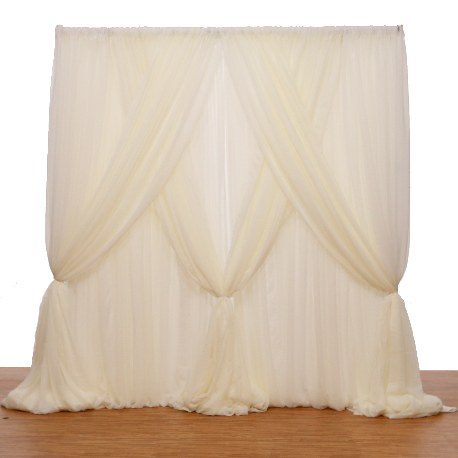 Included drape panels made from high quality crushed sheer fabric, in your choice of white or ivory, let you create a variety of backdrops for any occasions.