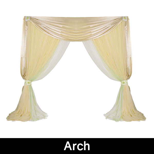 Included drape panels made from high quality crushed sheer fabric (in your choice of colors) and a few satin panels (in your choice of silver, gold, black, or dark purple) let you create a variety of backdrops for any occasions. Added decorative sashes and an iridescent diamond cut curtain are included to create even more options for your events.
