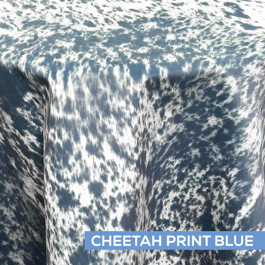 Add another touch of elegance to your event with some sleek tablecloths. They're perfect for weddings, parties, dinners, tradeshows, corporate events, and more. They will quickly become a staple in your toolbox for table decor whether you're planning your own party or are an event designer. You can even stock them in your linen closet year round for home decor. The blue cheetah print makes them especially classic.