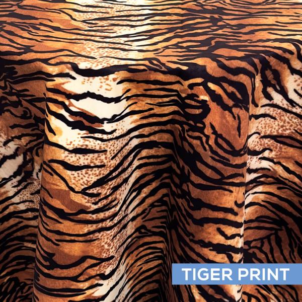 Add another touch of elegance to your event with some sleek tablecloths. They're perfect for weddings, parties, dinners, tradeshows, corporate events, and more. They will quickly become a staple in your toolbox for table decor whether you're planning your own party or are an event designer. You can even stock them in your linen closet year round for home decor. The tiger print makes them especially classic.