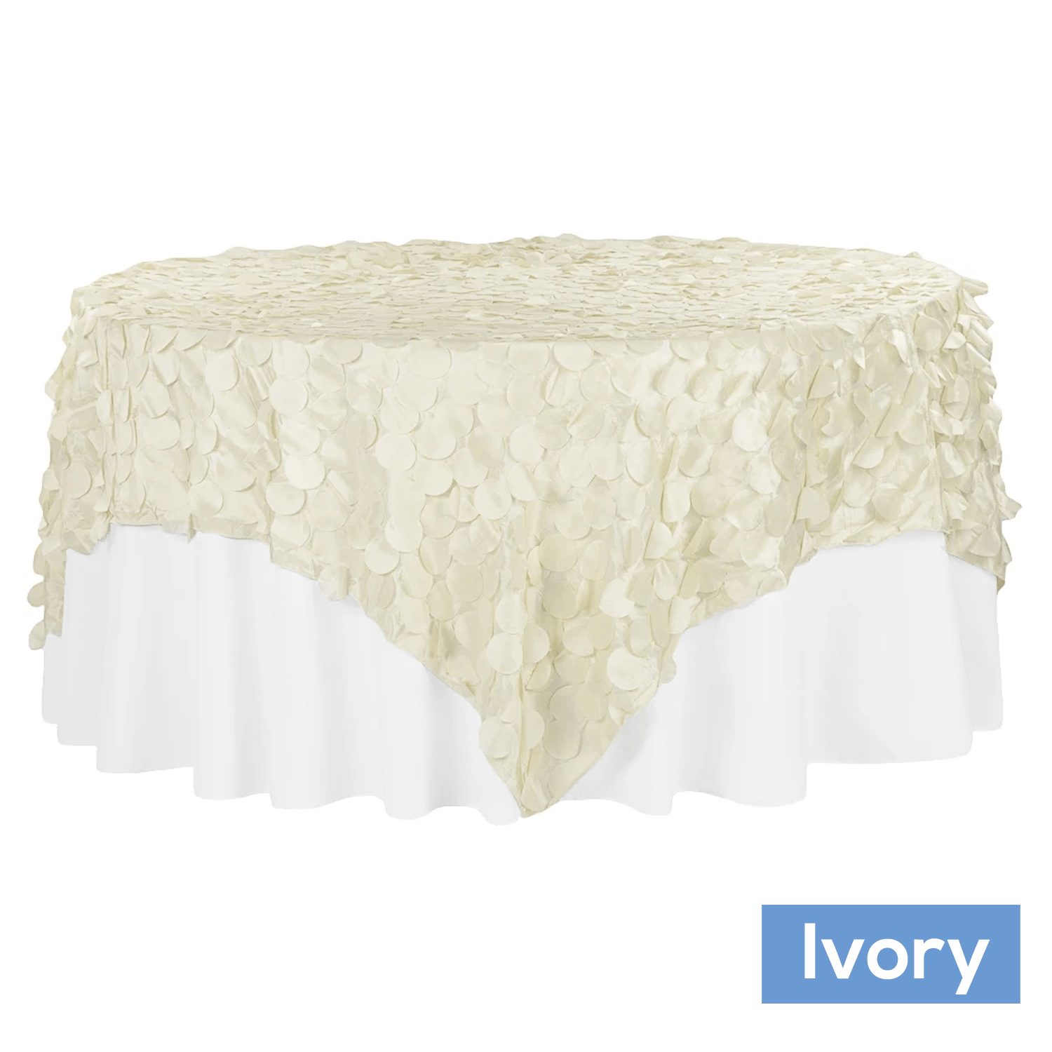 Large Petal Gatsby Circle - Square Table Overlay / Tablecloth - 90" x 90" in Ivory