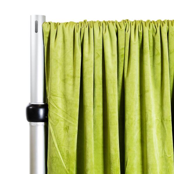 Our 110" Wide Lavish Velvet Drape has the look at feel of quality linen. It captures a sophisticated and tailored look that will accentuate any venue and any theme. Whether hiding bland walls or acting as partitions in order to seperate designated party spaces, the fabric will bring a truly sleek design element to any occasion or event: weddings, trade shows, or stage backdrops for stellar photo booth affairs! Pair with flowers, balloons, and event backdrop lighting for truly spectacular scenes. Indoor or outdoor, winter or spring, these fire velvet drapes are just the eye-catching features that the party needs. They are also wrinkle free also provide excellent coverage. We recommend you use 2 panels for every 10 feet of width.