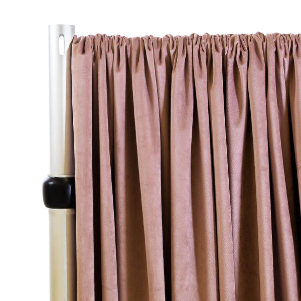 Our 110" Wide Lavish Velvet Drape has the look at feel of quality linen. It captures a sophisticated and tailored look that will accentuate any venue and any theme. Whether hiding bland walls or acting as partitions in order to seperate designated party spaces, the fabric will bring a truly sleek design element to any occasion or event: weddings, trade shows, or stage backdrops for stellar photo booth affairs! Pair with flowers, balloons, and event backdrop lighting for truly spectacular scenes. Indoor or outdoor, winter or spring, these fire velvet drapes are just the eye-catching features that the party needs. They are also wrinkle free also provide excellent coverage. We recommend you use 2 panels for every 10 feet of width.
