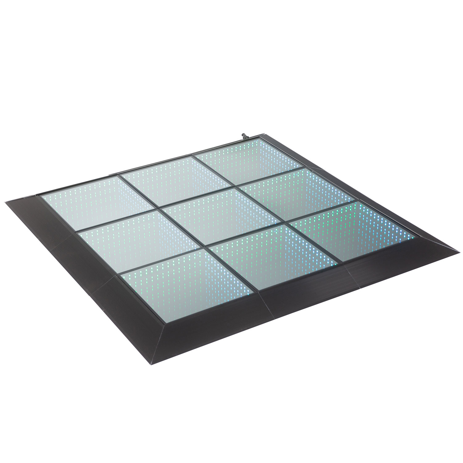Our 20ft LED 3D dance floor creates a fun atmosphere that will get your guests dancing. With our fantastic design, we use two mirrors to sandwich an LED light, making an infinite light trail for this 20ft 3D dance floor. Perfect for after dark, this 20ft LED dance floor lights up with a SD/DMX controller and remote with which you can adjust the dance floors colors.