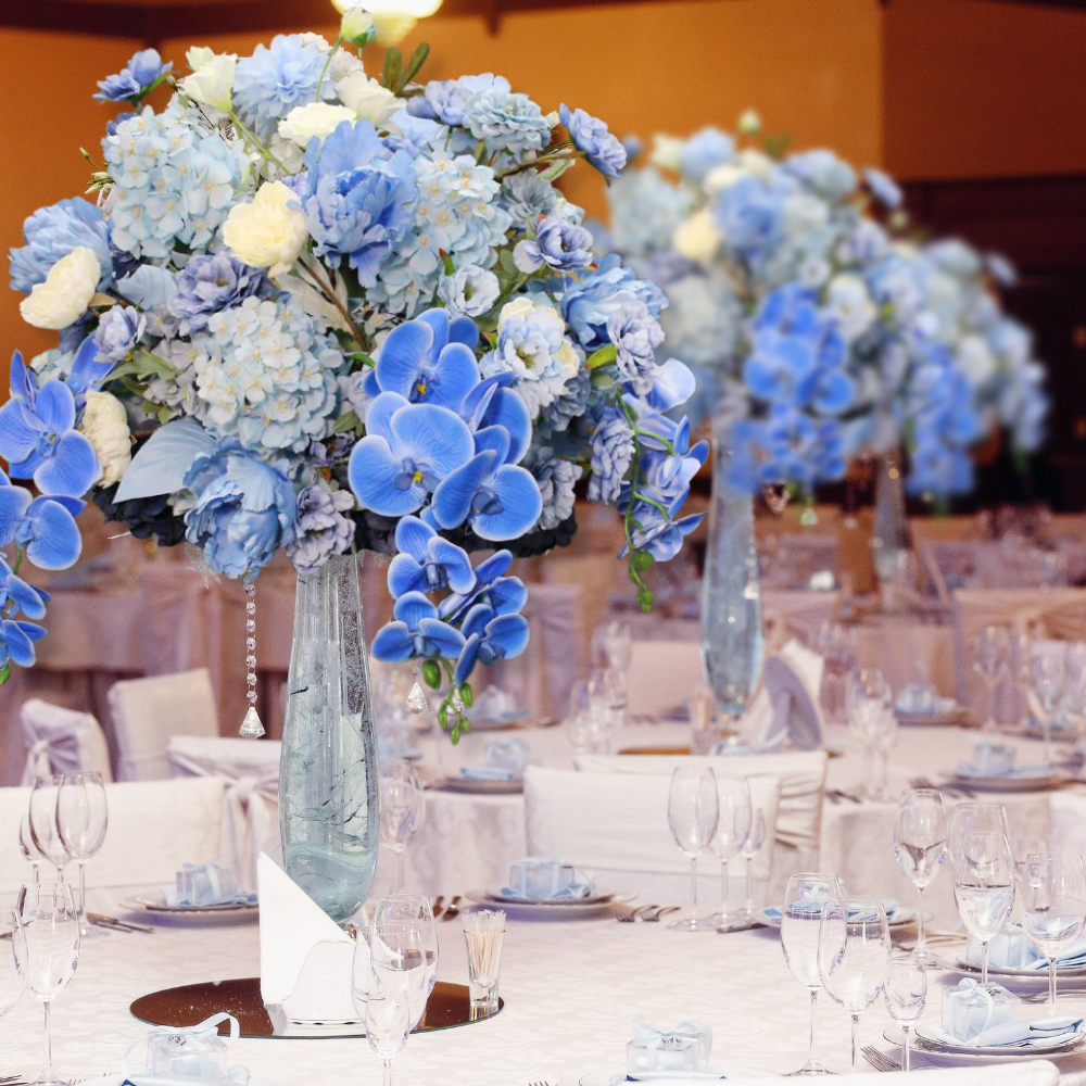 Elevate your table decor with some exquisite 5D floral centerpieces that radiantly capture the essence of elegance. Ideal for wedding receptions and formal events, but they can also be used for your own home decor in bathrooms, common areas and even outdoors. With their vibrant blue hue, they'll create captivating focal points no matter where they are, turning any room into a bright and bustling floral wonderland. Finally, elegance and sophistication without any of the maintenance. They're sure to leave a lasting impression.