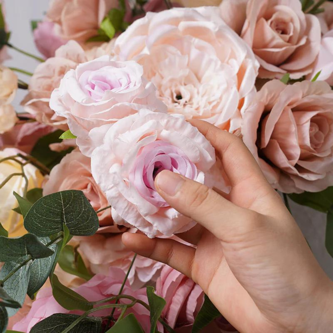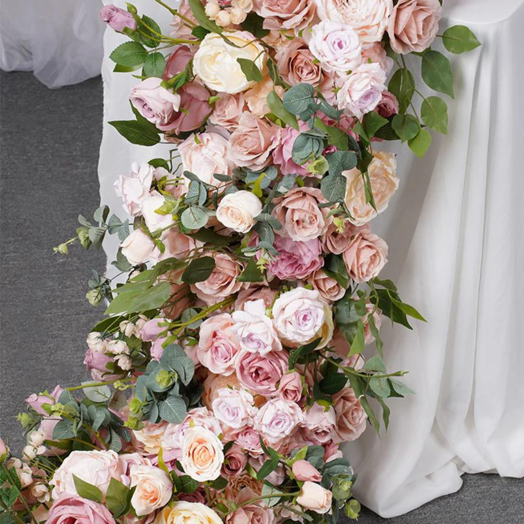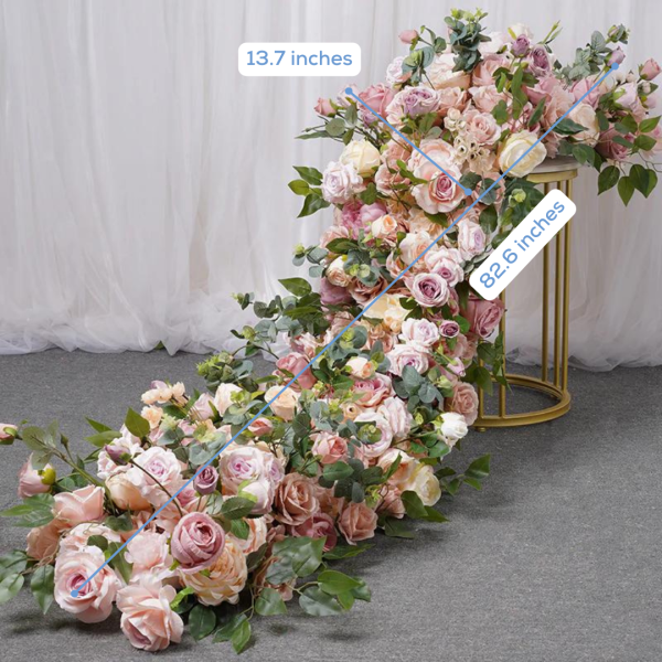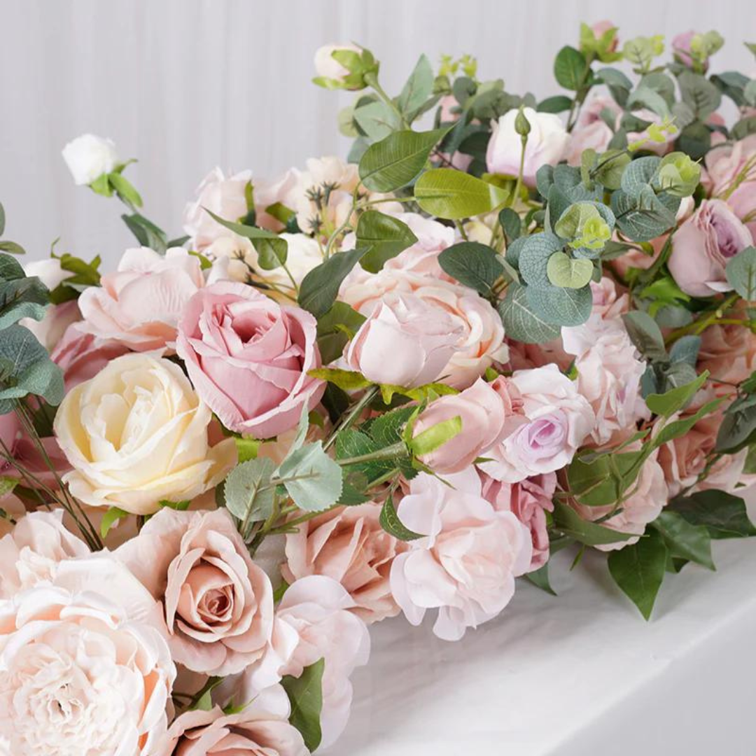 Elevate your table decor with some exquisite, extravagant floral table runners that radiantly capture the essence of elegance. Made of high quality silk and sturdy foam, they are ideal for wedding receptions, formal events, and so much more. They're incredibly versatile and will create captivating focal points no matter where they are, turning any room into a bright and bustling floral wonderland. Finally, elegance and sophistication without any of the maintenance. They're sure to leave a lasting impression. The colorful and harmonious blend of rose, peonies, and green leaves makes them especially charming.