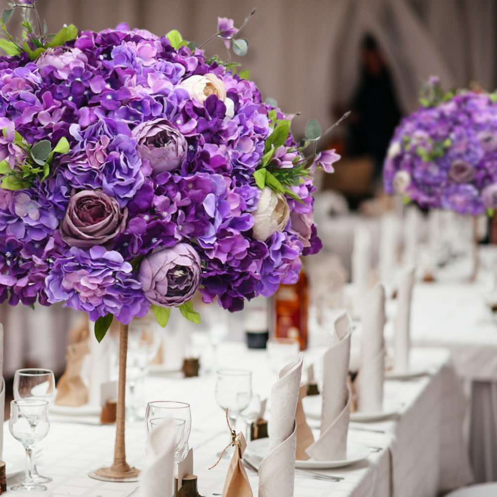 Make a statement with these majestic rose peony hydrangea ceterpieces. Ideal for wedding receptions and formal events, but they can also be used for your own home decor in bathrooms, common areas and even outdoors. They'll create captivating focal points no matter where they are, turning any room into a bright and bustling floral wonderland. Finally, elegance and sophistication without any of the maintenance. They're sure to leave a lasting impression. The lilac hue makes them especially charming and vibrant.
