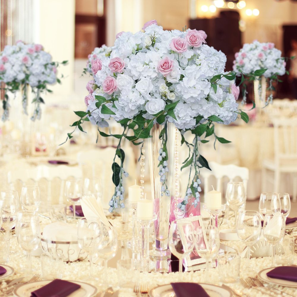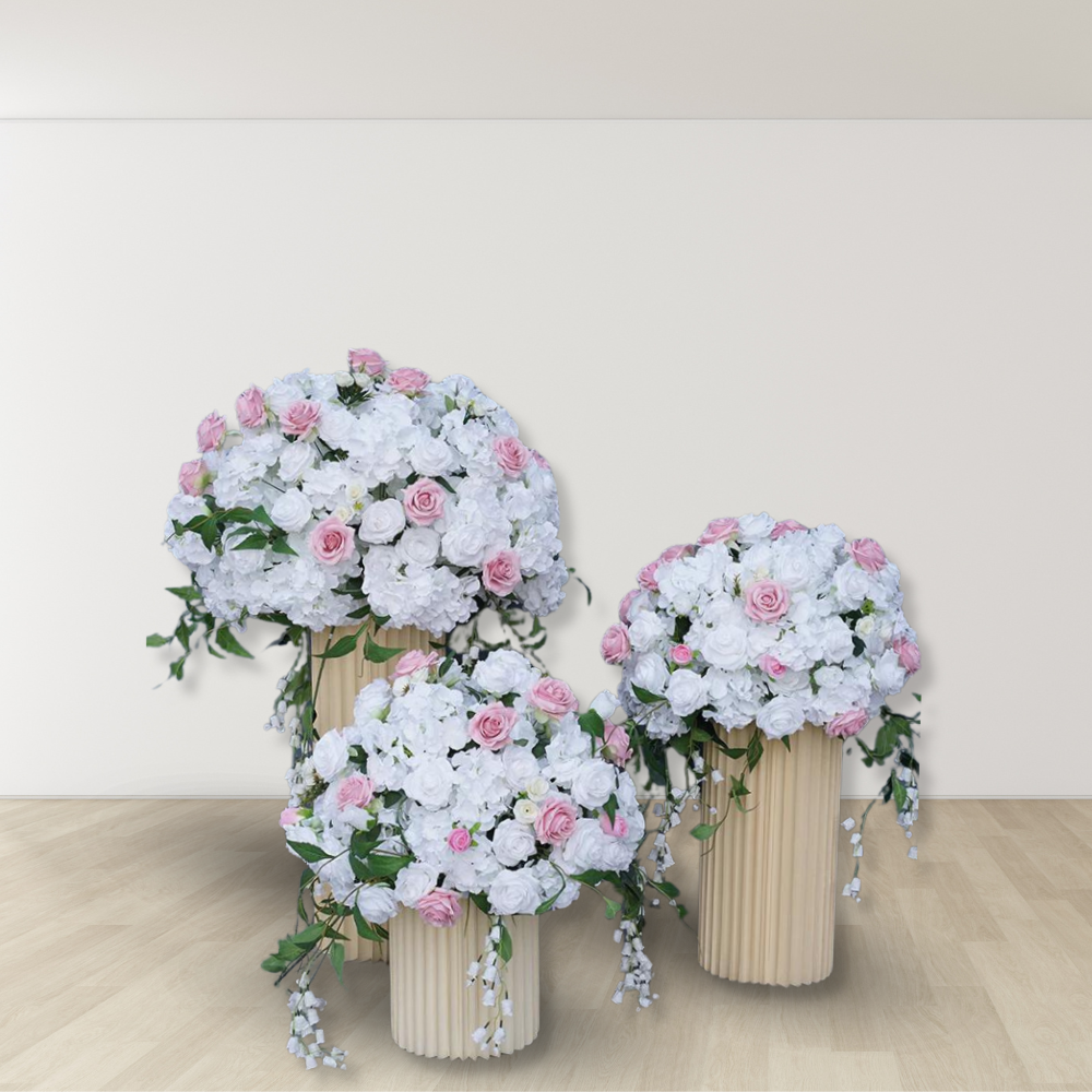 Leave a lasting impression on your friends and guests with some exquisite floral centerpieces. Ideal for weddings and formal events, but they can also be used for your own home decor in bathrooms, common areas and even outdoors. With these lifelike, elegant bouquets, you can turn any room into an enchanting floral wonderland. Finally, whimsy and elegance without any of the maintenace! The pink and white hue makes them especially classic and chic. Available in different sizes to suit your design needs.