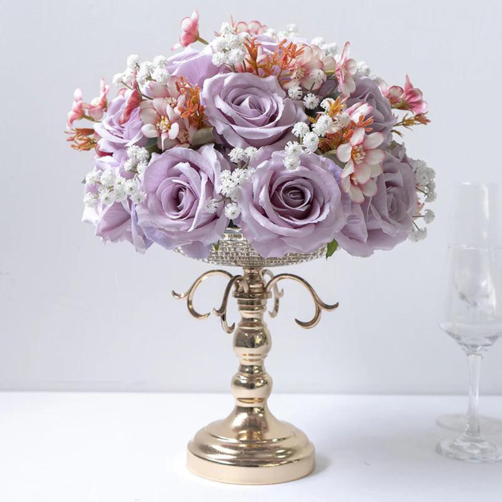 Add a touch of timeless beauty with these rose and baby's breath centerpieces. Ideal for weddings and formal events and bridal showers, but they can also be used for your own home decor in bathrooms, common areas and even outdoors. With these lifelike, elegant bouquets, you can turn any room into a floral wonderland. Finally, whimsy and elegance without any of the maintenace! The light purple hue makes them especially sophisticated.