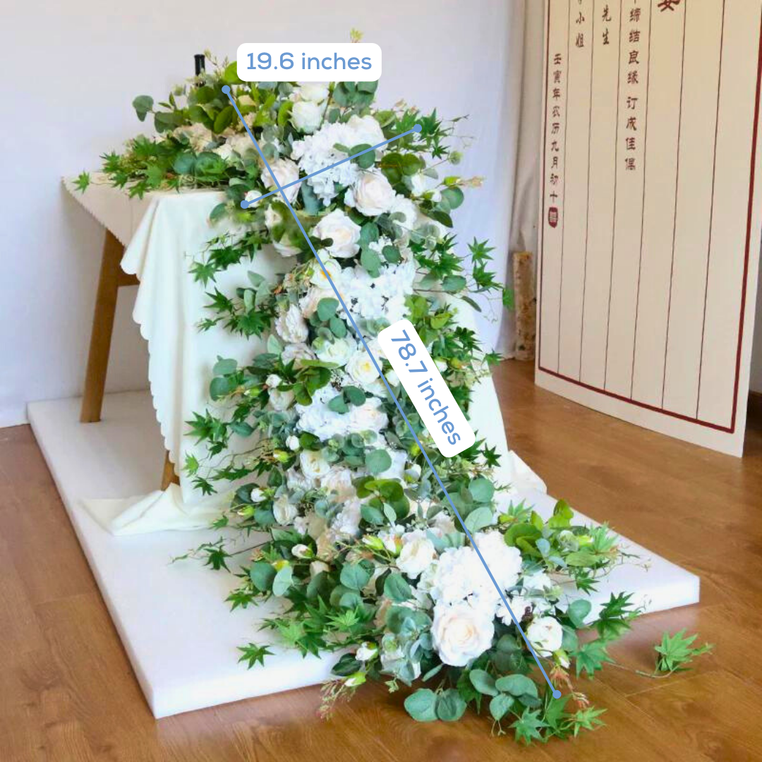 Elevate your table decor with some exquisite, extravagant floral table runners that radiantly capture the essence of elegance. Made of high quality silk and sturdy foam, they are ideal for wedding receptions, formal events, and so much more. They're incredibly versatile and will create captivating focal points no matter where they are, turning any room into a bright and bustling floral wonderland. Finally, elegance and sophistication without any of the maintenance. They're sure to leave a lasting impression. The harmonious blend of rose and eucalyptus makes them especially charming.