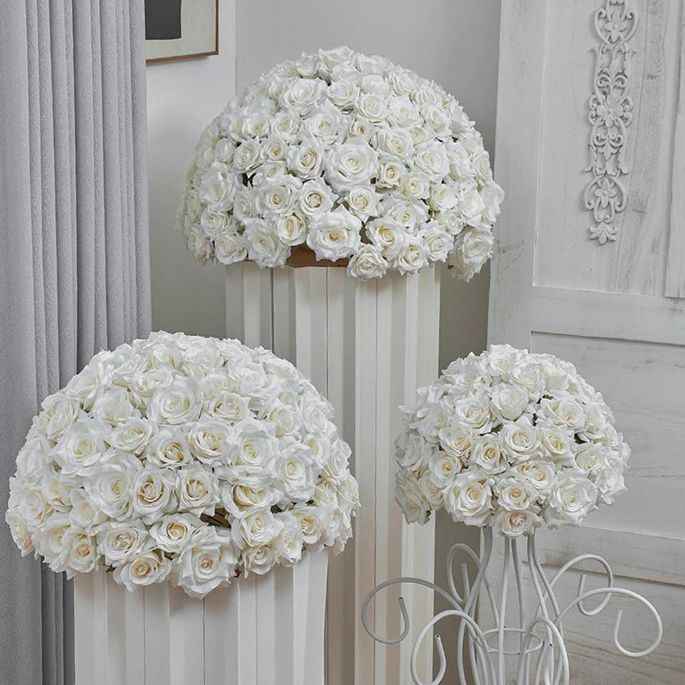 Add a touch of timeless beauty with these rose centerpieces. Ideal for weddings and formal events and bridal showers, but they can also be used for your own home decor in bathrooms, common areas and even outdoors. With these lifelike, elegant bouquets, you can turn any room into a floral wonderland. Finally, whimsy and elegance without any of the maintenace! The white hue makes them especially sophisticated. Choose from five sizes: Extra Small (11.8"W), Small (15.7"W), Medium (19.6"W), Large (23.6"W), and Extra Large (27.5"W) depending on your decor needs.