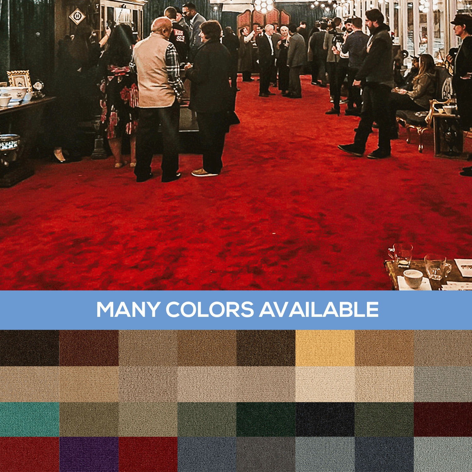 *Our Luxury Event Carpet is a tightly woven, low pile carpet. You have the option of selecting a dark carpet for a warmer feel or lighter colored ones for a home-like atmosphere.