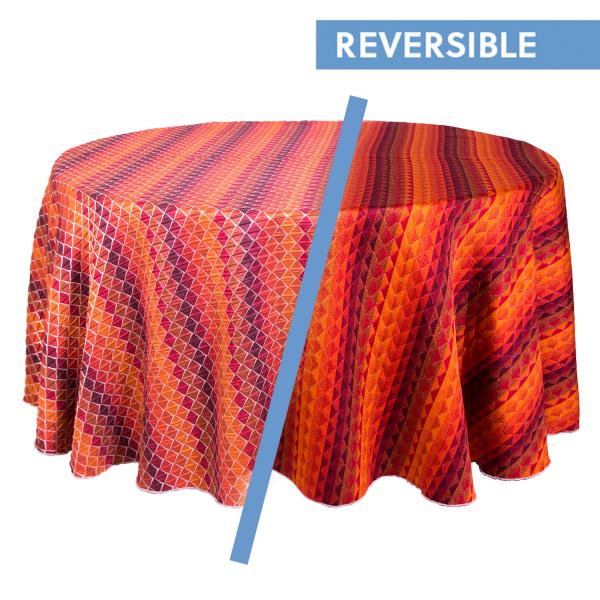 Sewing: Table linen exceeding the widths of the fabric (110") will have seams. All seams are sewn with 5-thread overlock sergers. Edges are finished with a 5-thread overlock serged edge or a 1/2" rolled hem.
