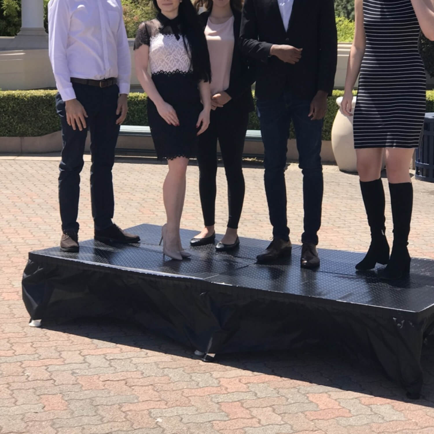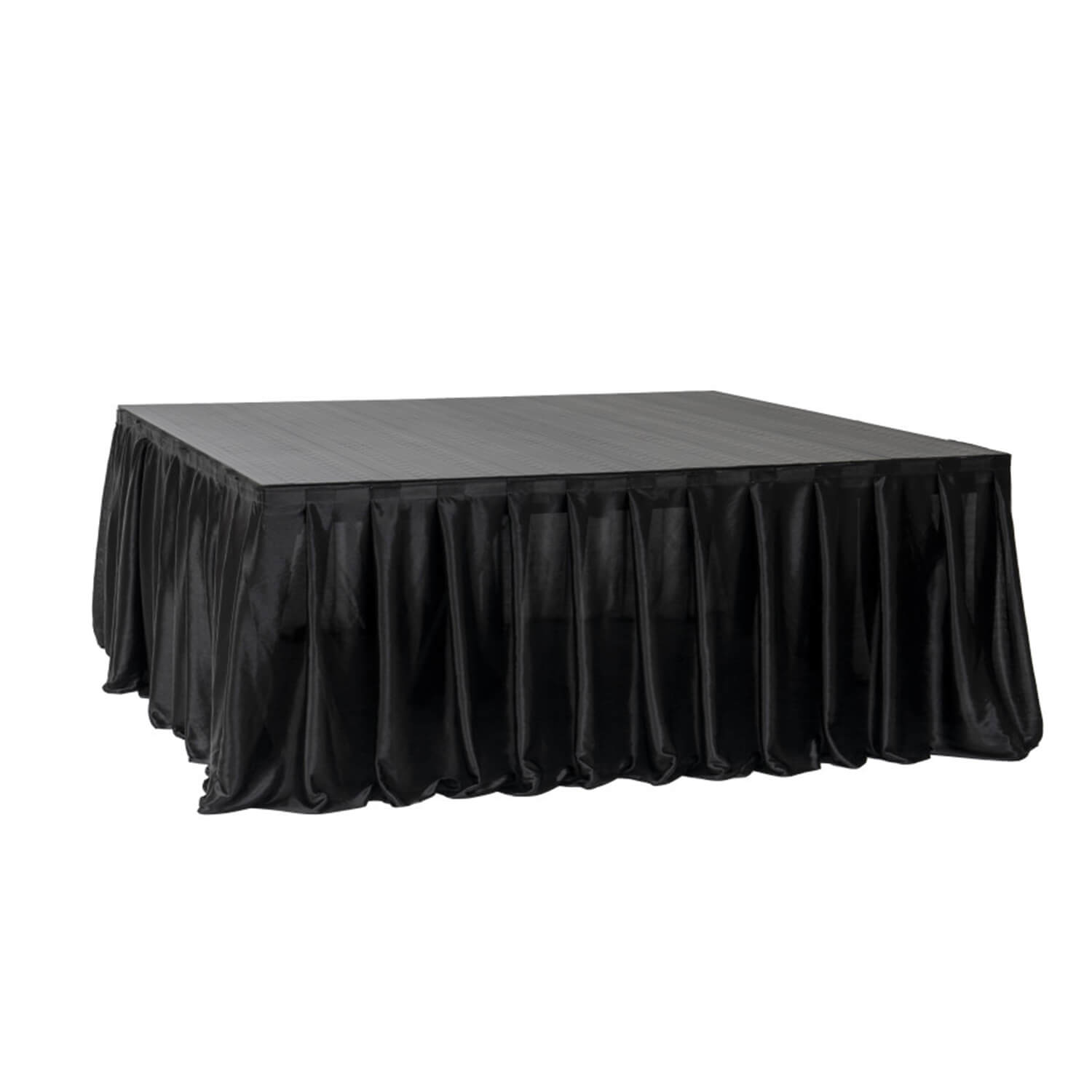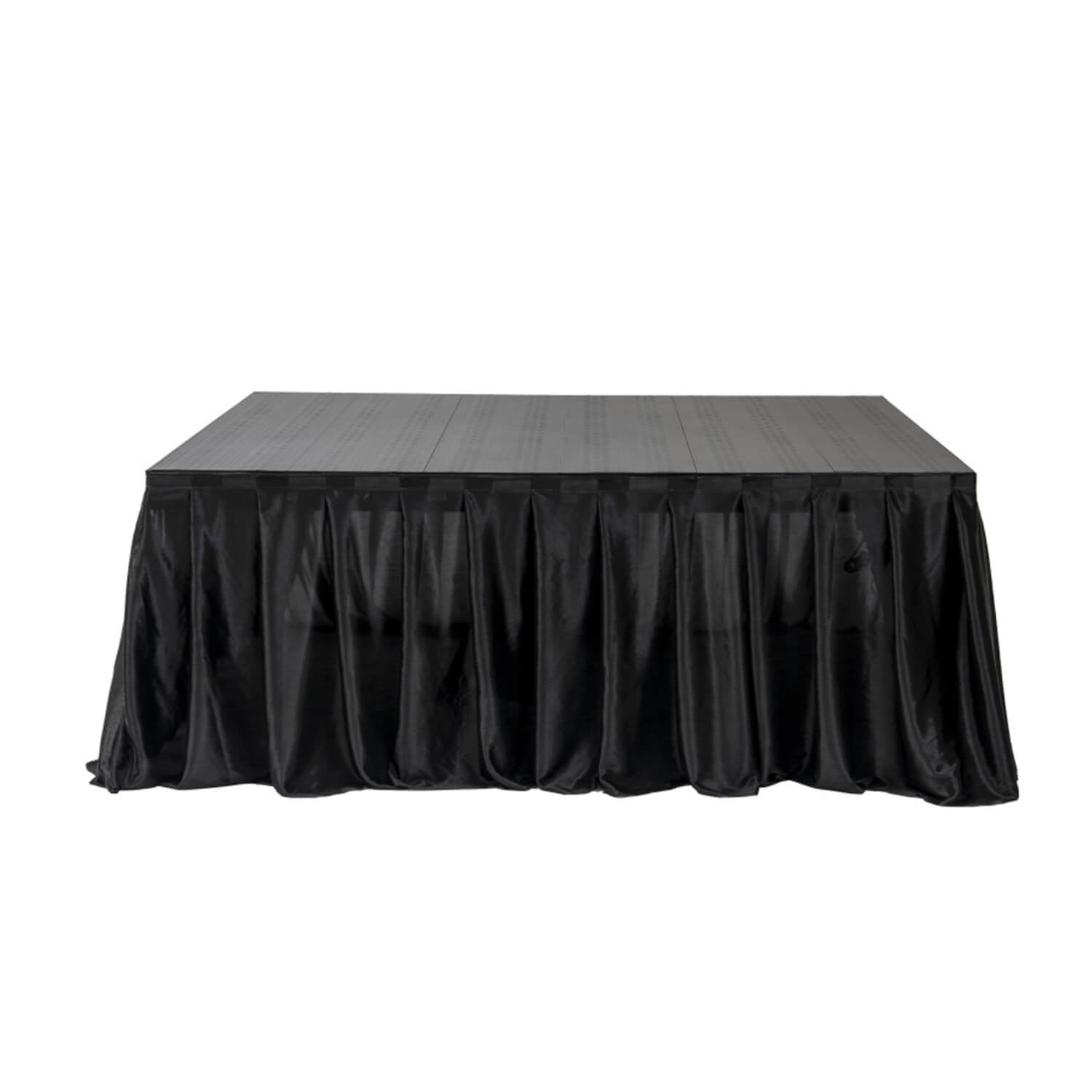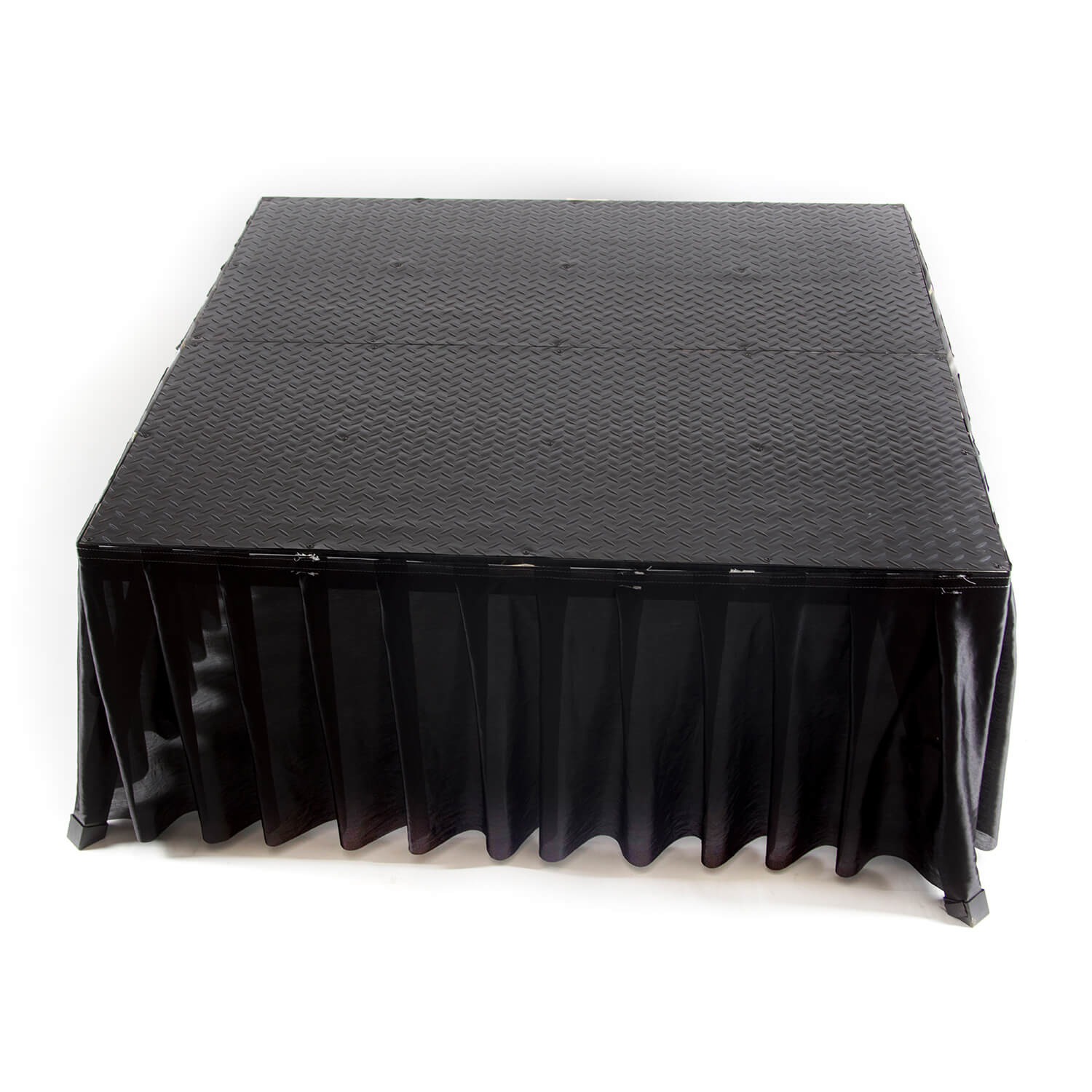 This black velcro stage skirt is to be paired with mystage products! A note on our stages: Create a flat and stable surface in seconds with MyStage! Whether using one as a stand-alone or connecting multiple to create your own size and pattern. It's the world's most portable and versatile stage, ready for any and all happenings and occasions! It's also incredibly structurally sound as the angled legs reduce lateral movement to facilitate an exceptionally stable base.