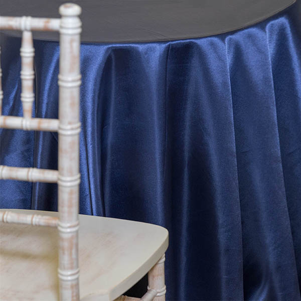 This navy blue deco satin tablecloth will blend your table decor with your theme decor. Our navy blue deco satin is a durable, shimmering fabric that feels silky soft and is easy to take care of. You can pick the right size for you from our many options of navy blue deco satin tablecloths.