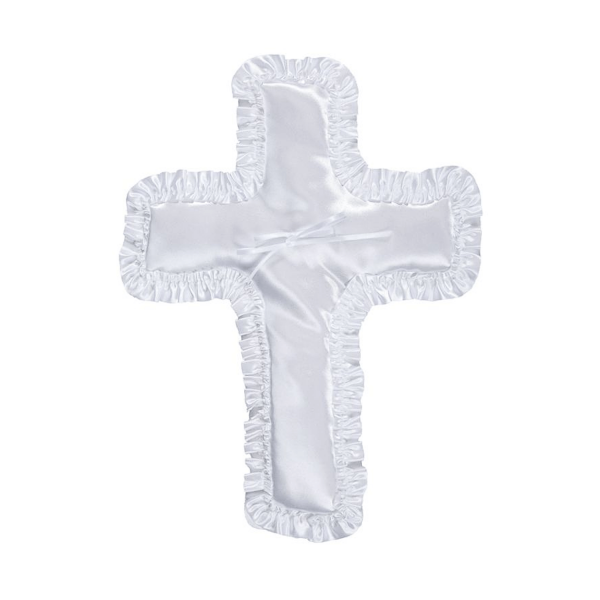 • Atlantic® 13" Cross Pillow, White Satin Edge • Fabric pillows with decorative edges • The pillow fabrics, styles and shapes your bride wants • 13" Overall Length x 10" Overall Width x 1" Depth x 1" Edge Trim • 1 per pack, 6 per case