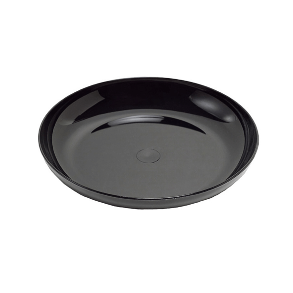 This obsidian black flat dish can be used for a whole host of occasions and functions. Though it is first and foremost created with the intention of serving as an embellishment for a column or pedestal display, don't let that box you in. Throw in an assortment of fruit, fashion it into the base for any floral design, or or use it to put gelatinous deserts on display. The options are endless.