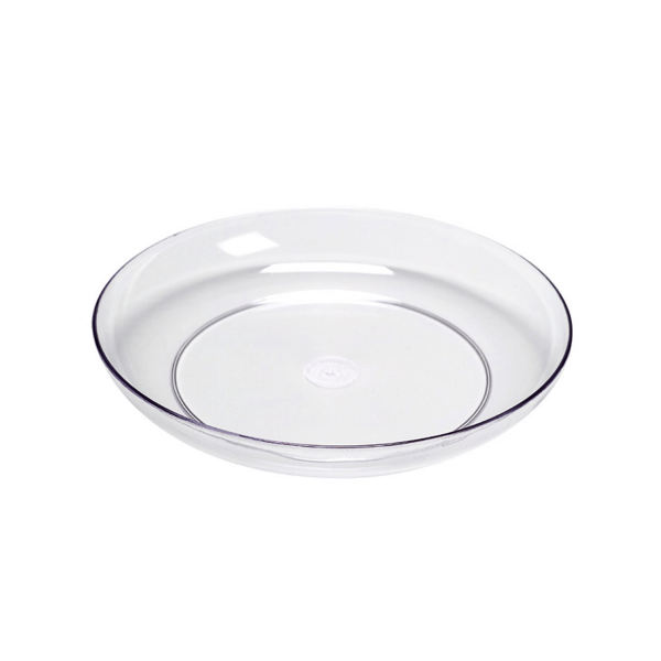 This transluscent flat dish can be used for a whole host of occasions and functions. Though it is first and foremost created with the intention of serving as an embellishment for a column or pedestal display, don't let that box you in. Throw in an assortment of fruit, fashion it into the base for any floral design, or or use it to put gelatinous deserts on display. The options are endless.