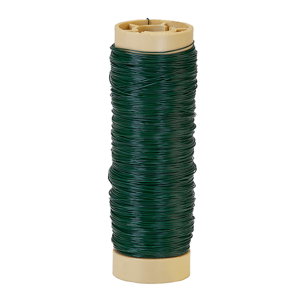 Let your imagination run wild, but stay in creative control with this spool wire. Triple coated with a dark green finish, it is generally used to secure flowers and greenery to all sorts of surfaces and objects such as staircases, banisters, chuppahs, and more. So whether decorating for a wedding or birthday party, a celebratory or funerary occasion, you won't want to do without this handy structural element. Just wrap around any flower stem and cover the wire with some floral tape and you're ready to go. It can also be used to secure bows to flower arrangements, and greenery or cones to wreath frames. Just remember, the higher the gauge the thinner the wire, the thinner the wire, the more malleable and sturdy the design.