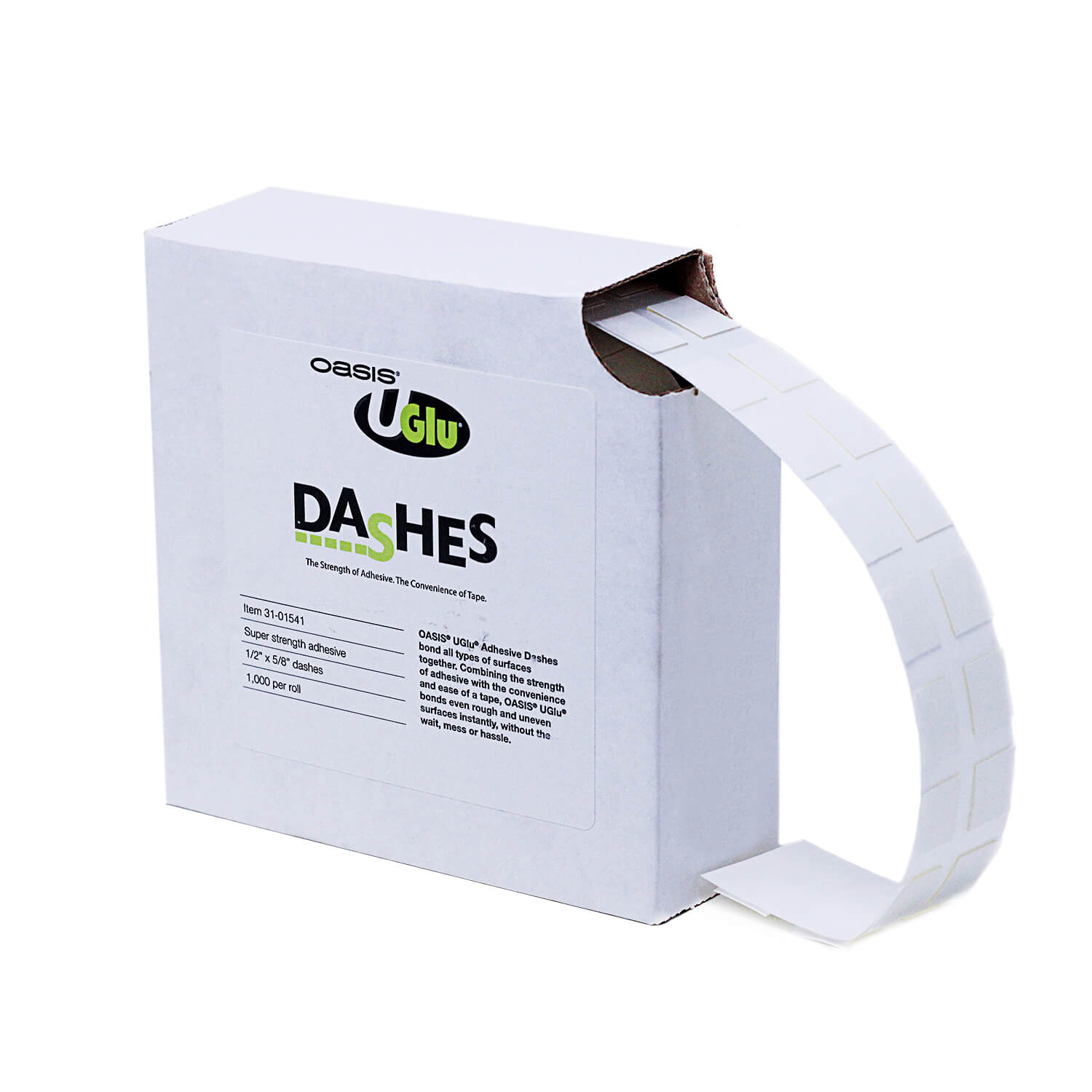 This high-strength adhesive with the convenience and ease of tape has all the fixings to take your decorative game to the next level. Perfect for general purpose applicatons in-shop or on-site, it offers truly superior holding power and will bond instantly to plastics, metal, styrofoam, fabric, wood, glass, ceiling tile, brick, granite, paper, drywall, laminates and more. It is also easy to peel off, non-toxic, acid-free, waterproof and weatherproof. Birthdays or parties, weddings or anniversaries, this adhesive will keep it all looking super classy and clean. • 1/2" x 1/2"dash, 1,000 per roll • 12 rolls per case