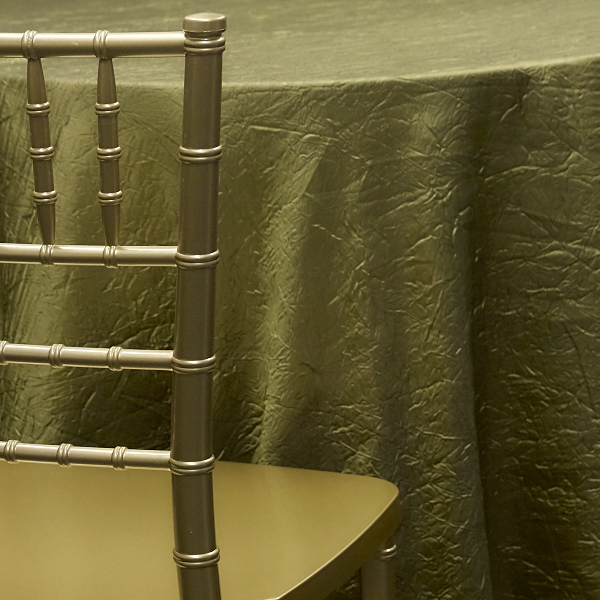 This olive crushed taffeta tablecloth decorates your space with a fun, popular style. Our olive crushed taffeta is a quality linen that we create our tablecloths out of. With many size options and the ease of taking care of it, you will be sure to find the right olive crushed taffeta tablecloth for you.