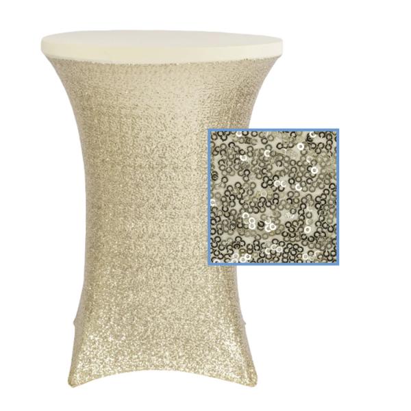 Perfect Fit Sequin Spandex Cocktail Table Cover – Champagne