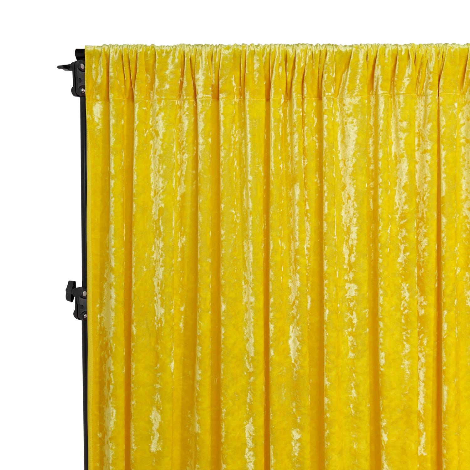 Premade Velvet Backdrop Curtain 10ft Long x 52in Wide in Canary Yellow Color: Canary Yellow Dimension: 10ft height x 52in width Pockets: 4" on top Material: Velvet