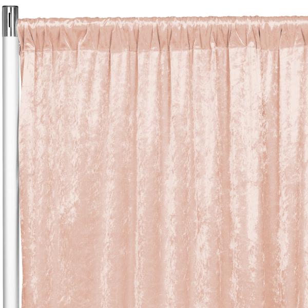 Premade Velvet Backdrop Curtain 18ft Long x 52in Wide in Blush/Rose Gold Color: Blush/Rose Gold Dimension: 18ft height x 52in width Pockets: 4" on top Material: Velvet
