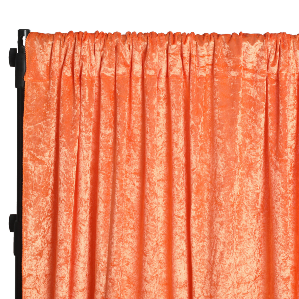 Premade Velvet Backdrop Curtain 18ft Long x 52in Wide in Orange Color: Orange Dimension: 18ft height x 52in width Pockets: 4" on top Material: Velvet