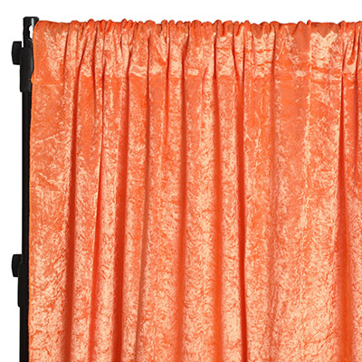 Premade Velvet Backdrop Curtain 8ft Long x 52in Wide in Orange Color: Orange Dimension: 8ft height x 52in width Pockets: 4" on top Material: Velvet