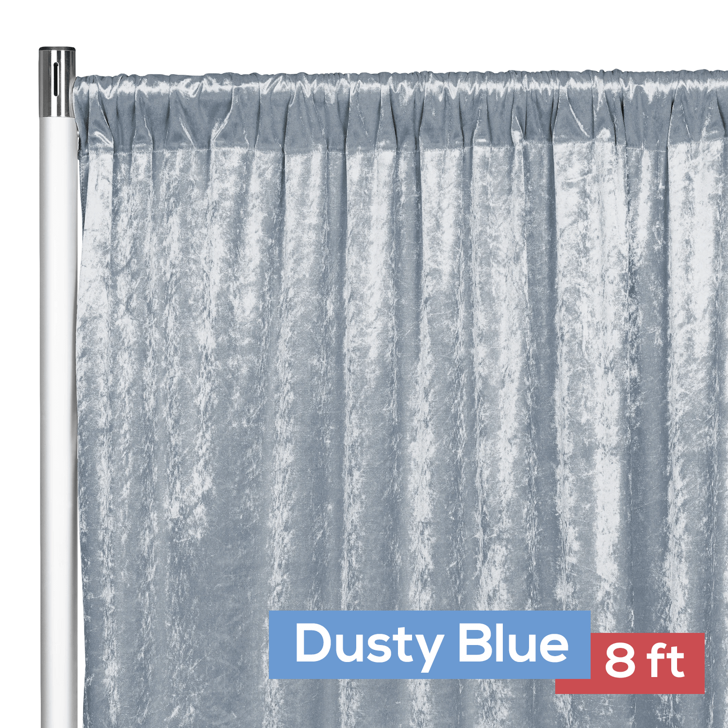 Color: Dusty Blue Dimension: 8 ft height x 52 inches width Pockets: 4" on top Material: Velvet