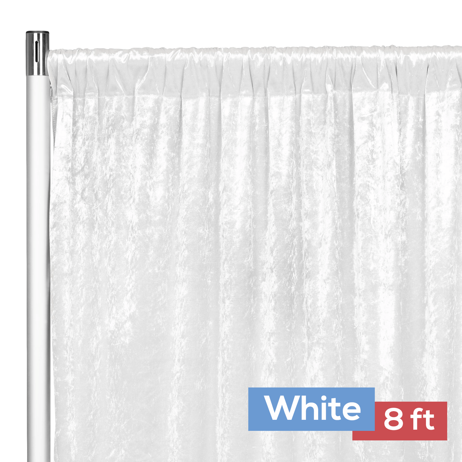 Color: White Dimension: 8 ft height x 52 inches width Pockets: 4" on top Material: Velvet