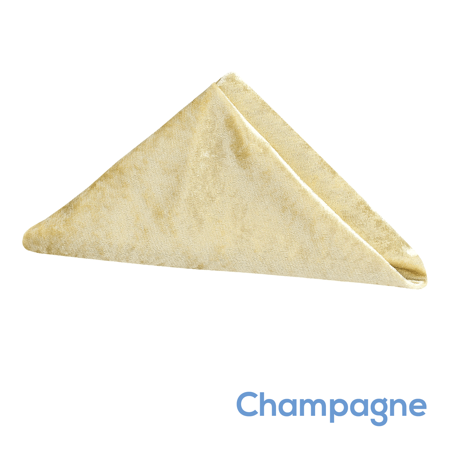 Add these light yellow, champagne toned velvet napkins to a white or black tablecloth for a touch of color – keeping your color scheme elegant and refined. This works especially well when paired with chair bands or sashes, and bows.