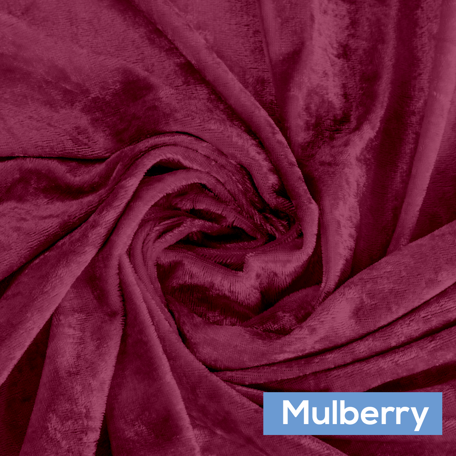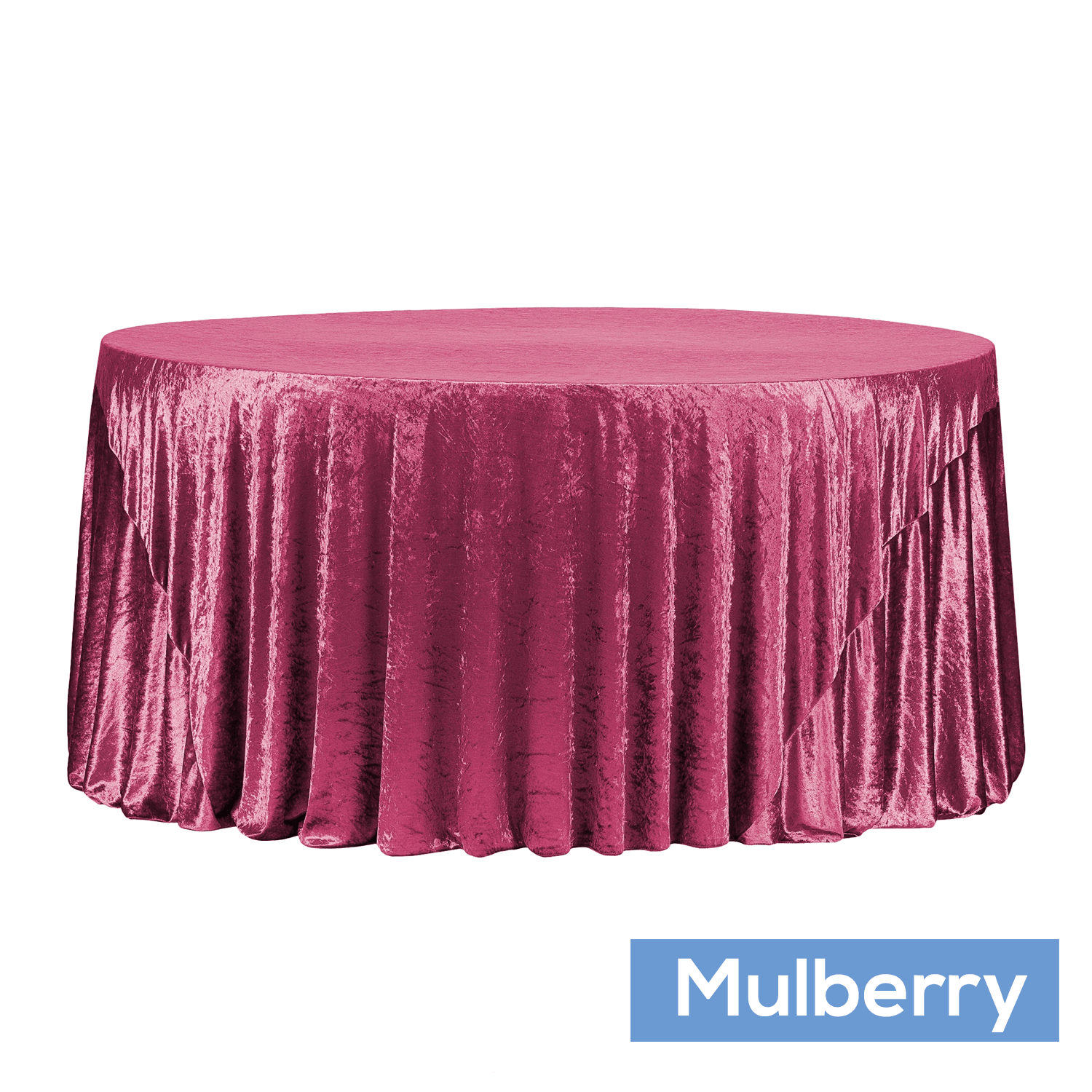 Color: Mulberry Material: Velvet Size: Approx. 120" Round with seams Drop: A 120" Tablecloth over a 60" Round Table (standard 30" table height) will touch the floor. A 120" Tablecloth over a 72" Round Table (standard 30" table height) will hang 6" above the floor.