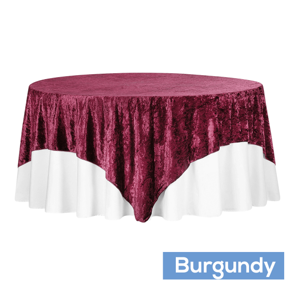 Premade Velvet Tablecloth / Overlay 85" x 85" Square in Burgundy.