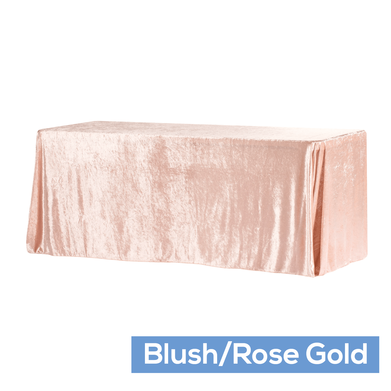 Color: Blush/Rose Gold Material: Velvet Size: Approx. 90"x132" Seamless Pack: 1 per polybag Drop: The tablecloth will touch the floor when placed on a 6 foot rectangular table with a 30" standard height.