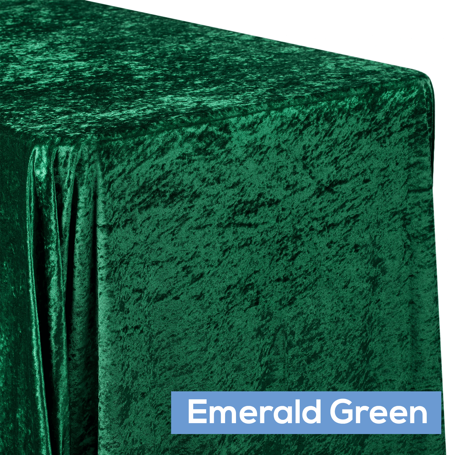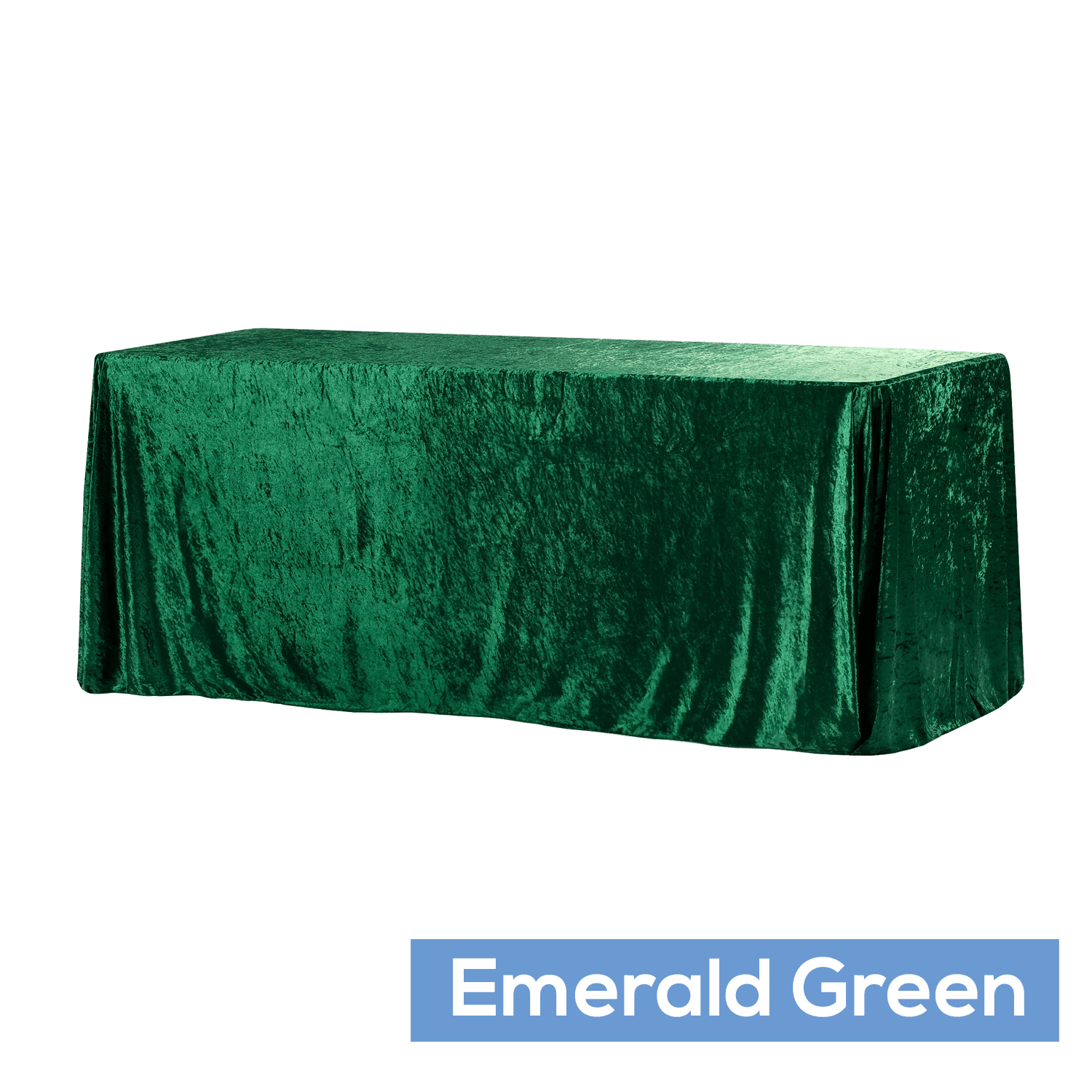 Color: Emerald Green Material: Velvet Size: Approx. 90"x132" Seamless Pack: 1 per polybag Drop: The tablecloth will touch the floor when placed on a 6 foot rectangular table with a 30" standard height.
