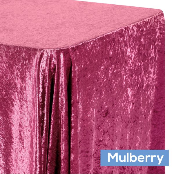 Color: Mulberry Material: Velvet Size: Approx. 90"x132" Seamless Pack: 1 per polybag Drop: The tablecloth will touch the floor when placed on a 6 foot rectangular table with a 30" standard height.