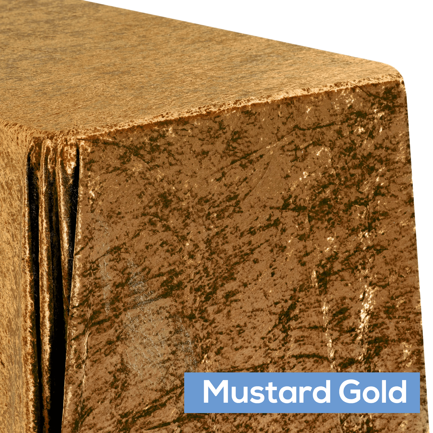 Premade Velvet Tablecloth - 90" x 132" Rectangular in Mustard Gold.