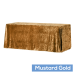 Color: Mustard Gold Material: Velvet Size: Approx. 90"x132" Seamless Pack: 1 per polybag Drop: The tablecloth will touch the floor when placed on a 6 foot rectangular table with a 30" standard height.