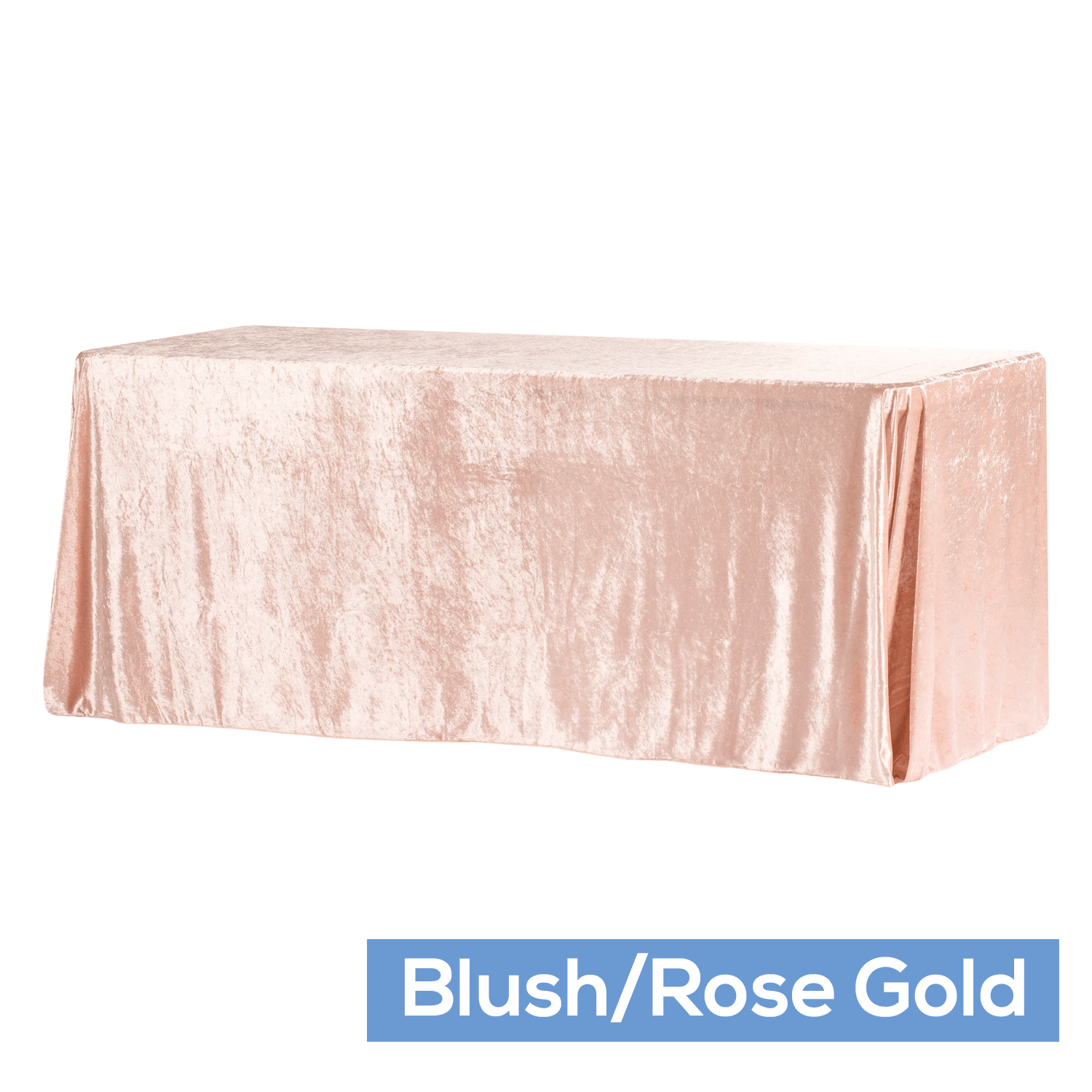 Color: Blush/Rose Gold Material: Velvet Size: Approx. 90"x156" Seamless Pack: 1 per polybag Drop: The tablecloth will touch the floor when placed on a 6 foot rectangular table with a 30" standard height.