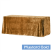 Color: Mustard Gold Material: Velvet Size: Approx. 90"x156" Seamless Pack: 1 per polybag Drop: The tablecloth will touch the floor when placed on a 6 foot rectangular table with a 30" standard height.