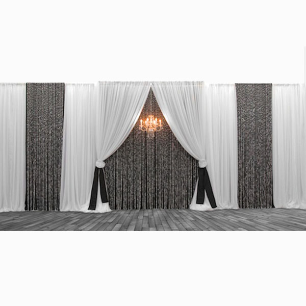 This mixed design gives you the ability to customize this 8-20ft three-panel backdrop. This style is a great way to make a podium, table, or another piece central in your event. Our attractive 8-20ft backdrop will bring the attention of your guests and add your choice of color to your event.