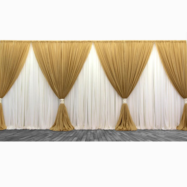 This classic 6-10ft three-panel backdrop allows you versatility in decorating for your event. Choose the colors that you need, the fabrics you want, and the perfect height. You can even pick the design you want to set up. This 6-10ft design uses additional drape supports for the front curtains to keep your backdrop stable.