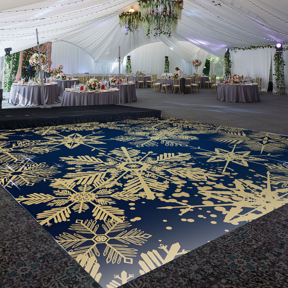 Transform your venue into a fun and fabulous space with this custom size dance floor wrap. Made of high quality, low-tac, dot adhesive vinyl, it's temporary, easy to remove, and sure to dazzle onlookers and dancers alike. All you have to do is select your desired width and length! Our Bold Christmas design belongs to our "Christmas Day" print designs for your most upscale events.
