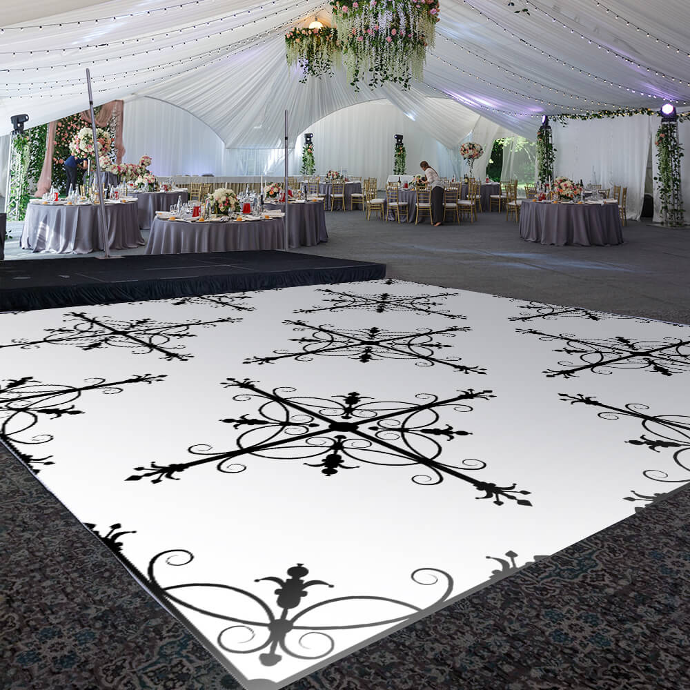 Transform your venue with this custom size dance floor wrap! Made of high-quality, low-tac, dot adhesive vinyl which is temporary and easy to remove, the material can be used on hardwood floors, event dance floors, or polished concrete. The choice is yours. It's time to dance the night away with these dazzling floor fabrics! Our Neutral Damask design belongs to our "Classical" print designs for your most upscale events.