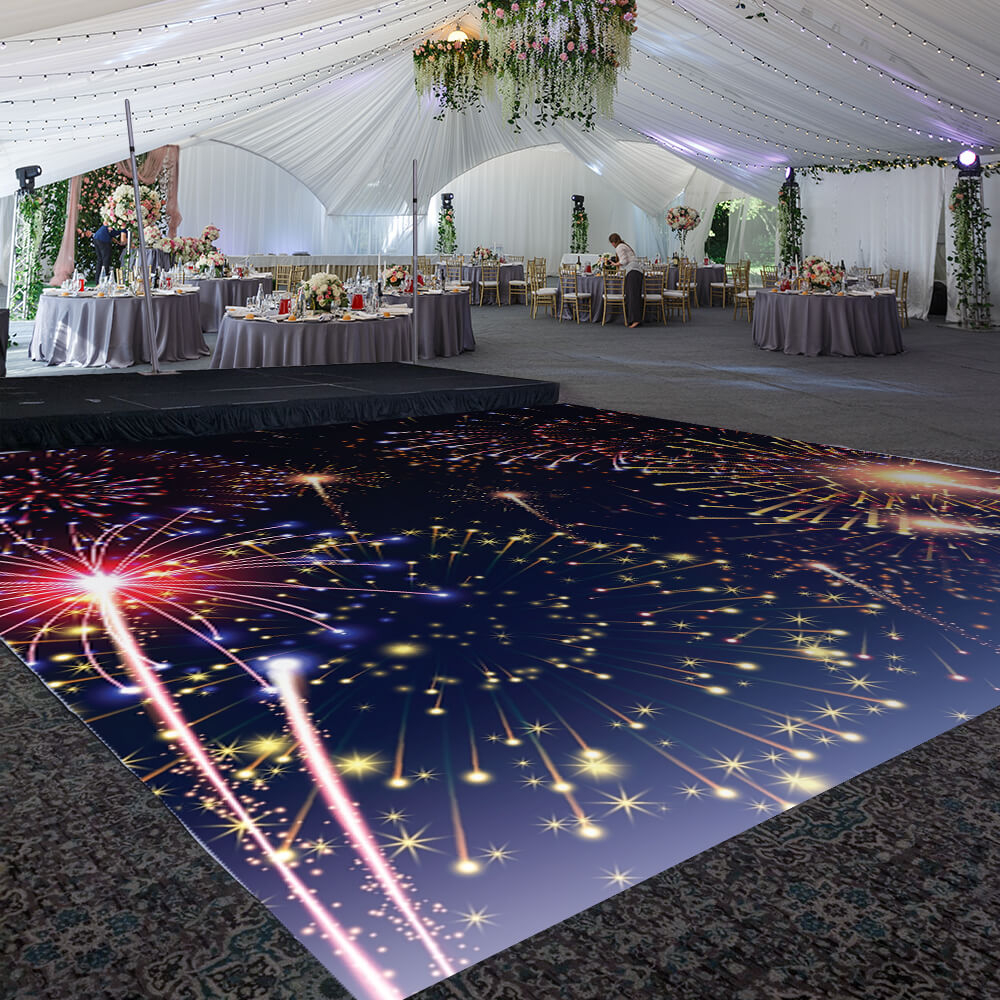 Transform your venue into a fun and fabulous space with this custom size dance floor wrap. Made of high quality, low-tac, dot adhesive vinyl, it's temporary, easy to remove, and sure to dazzle onlookers and dancers alike. All you have to do is select your desired width and length! Our Like A Firework design belongs to our "New Year's Day" print designs for your most upscale events.